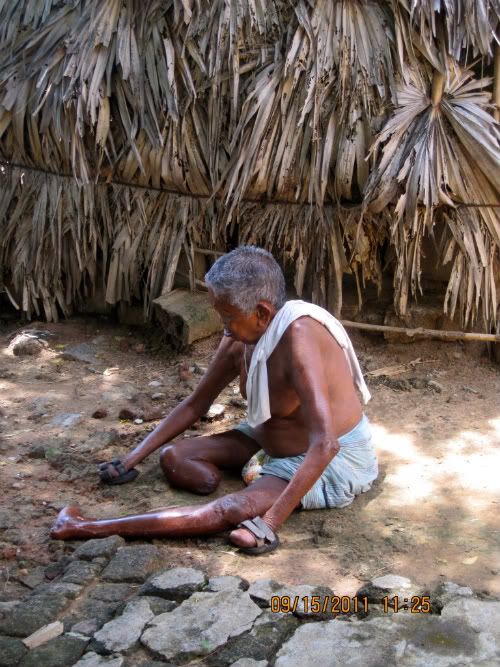 The man above is Jayaraj, he is the leader of this particular colony and is still doing very well for his health. This man is a complete goon. The whole time I was washing his feet, we were dancing together. We would do the sprinkler and the robot. He just laughed and laughed and said, “super!”. After we finished up, we turned on some Tamil music and had a dance party, doing the Macarena. As we left, he hugged us each saying “Nandri, vanakkum.” (Thank you, goodbye.) I sincerely admire this man.