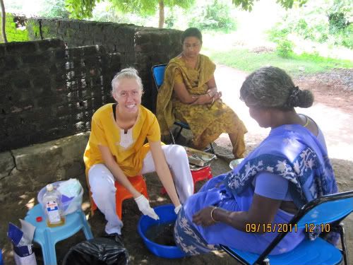Originally posted on September 19, 2011. Each Monday and Friday, I go out with the Rising Star Medical Squad to different leprosy colonies. Here we give each patient a watered down doctor’s appointment. We take their blood pressure, they see the doctor for check ups on other things, we wash their feet and soak their ulcers, and then we rewrap the wounds and in bad cases even cut out part of the ulcers. That part is done by actual certified nurses of course. This past week was extra amazing in the colonies, as I felt their complete gratitude for our help. These people literally have nothing, everything has been taken away from them. But as we come in each day, they are joyous and beautiful. You feel their spirits glow and your heart is so full.