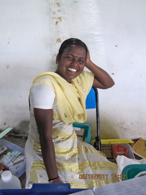 Navamani- the ulcer nurse. She is the one that goes into the wounds and really cleans them out. It gets pretty gross. Sometimes she even cuts of big chunks of dead limb. The first time I went out with the medical squad, we had to buy some waste bins and she had me go out into the streets with her. The whole time, she made me hold her hand everywhere we went. And if some one tried to touch me or talk to me, she would step in front of them and just start howling in Tamil. Very protective of their white folk.