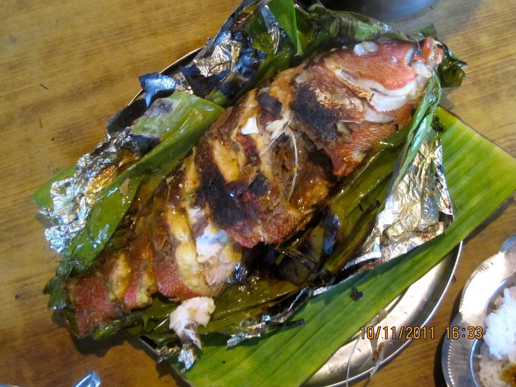 Before my trip to Havelock Island, I was not a big fish eater. But we got to pick fresh fish, and have it fried up in a traditional Indian style right before us and it only cost about 5 dollars. He wrapped it in foil and banana leaf, filled it with spices, and cooked it through. Celina and I ate fish at each chance we got. Mainly because meat is never found here, and when it is, there are tons of bones in it. Like in the dining hall, they serve fish on Thursdays and chicken on Sundays, but it is eyeballs and all- literally. So you find more bone than meat.