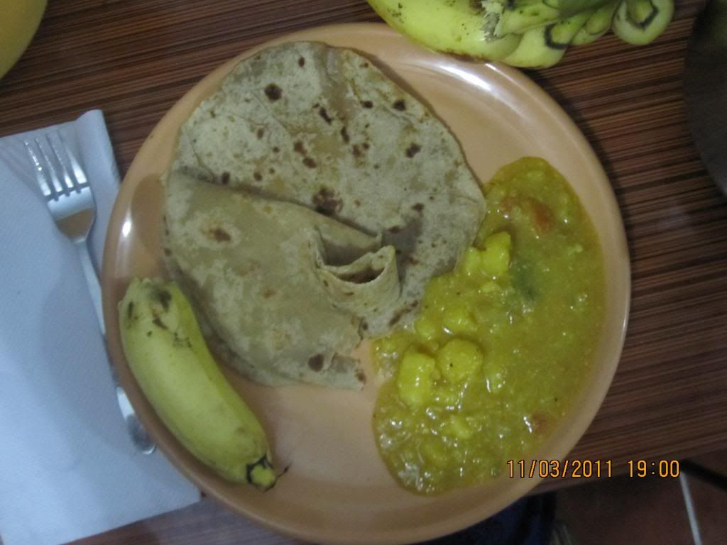 Chiphati! Another tortilla type thing, but this one contains protein. It is thicker and has a bigger circumference, but it is NOT made of rice, and maybe that is why I love it so much. It is a bit thicker and is served with a rich potato and carrot sauce (along with other vegetables that I've never heard of). Some people wrap it up like a burrito, or you rip and dip it in the sauce. We save all the left overs and eat them throughout the week.