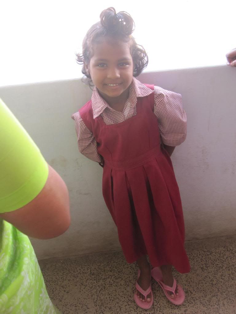 There are a few students at Rising Star who have at a point in their lives, had or have leprosy. Currently, there are two students who are taking the anti-biotics. This is Sudha. She is in UKG and is probably one of the cutest kids at this school. She is mid-way through her antibiotics and her lesions are almost gone. So, a few days ago, we had to take her to the hospital for a check up. Let me just say, she did absolutely amazing, too. So happy the whole time. I let her listen to my iPod on the way there, you know, to get her pumped up.