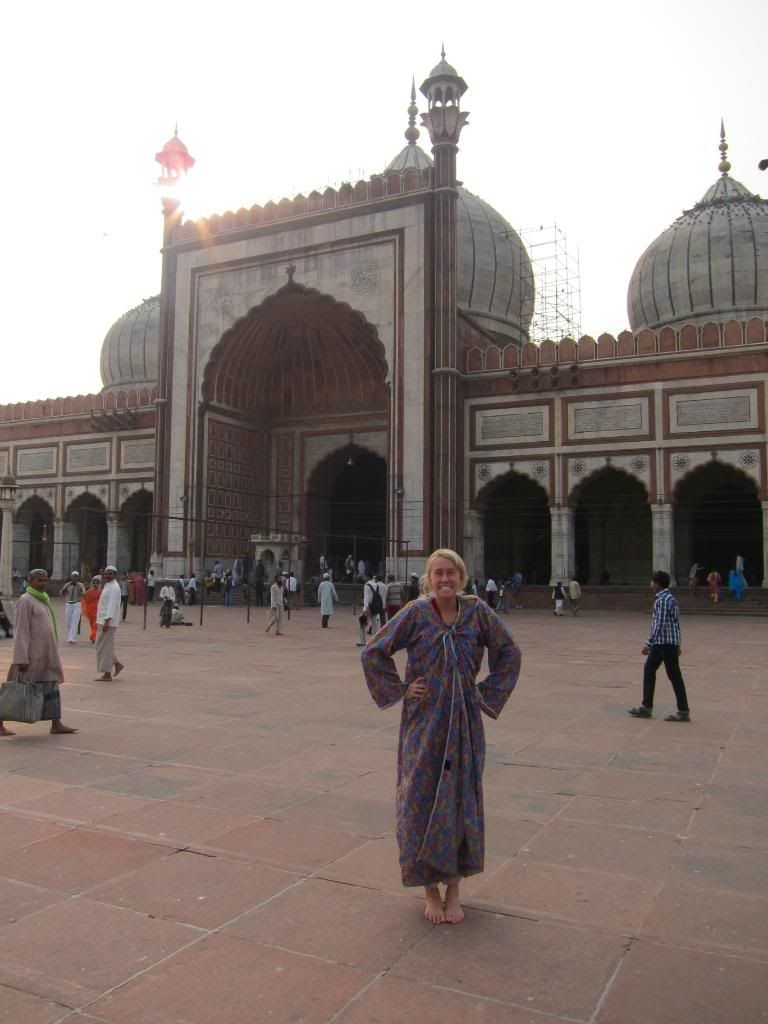 At the mosque, being foreigners, we had to put on these goofy robes because of modesty regulations. Although, most of us were probably more modest than our Indian friends. The architecture was beautiful. There was a huge pile of bird food that was in the center of the grounds and birds flooded it. So, of course, I had to run through and watch them all fly up around me. I didn't even care that they were pigeons, rats of the sky.