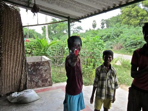 This is Ashok, Kartik, and Vijay’s home. Ashok is a member of LifeDANCE and one of the goofiest kids I’ve ever met. He does the robot like none other! They invited us in and we played for a while. Seeing where they live can completely change how you feel for the kids. This home has two rooms and a hallway. Dad, Mom, and kids all sleep in one room on the floor and kitchen and storage are next door. Their mother is Silvy, who is the house cleaner of the ‘Greenhouse’, so I’ve gotten to know her pretty well. These boys took us on a tour of Thottanval.